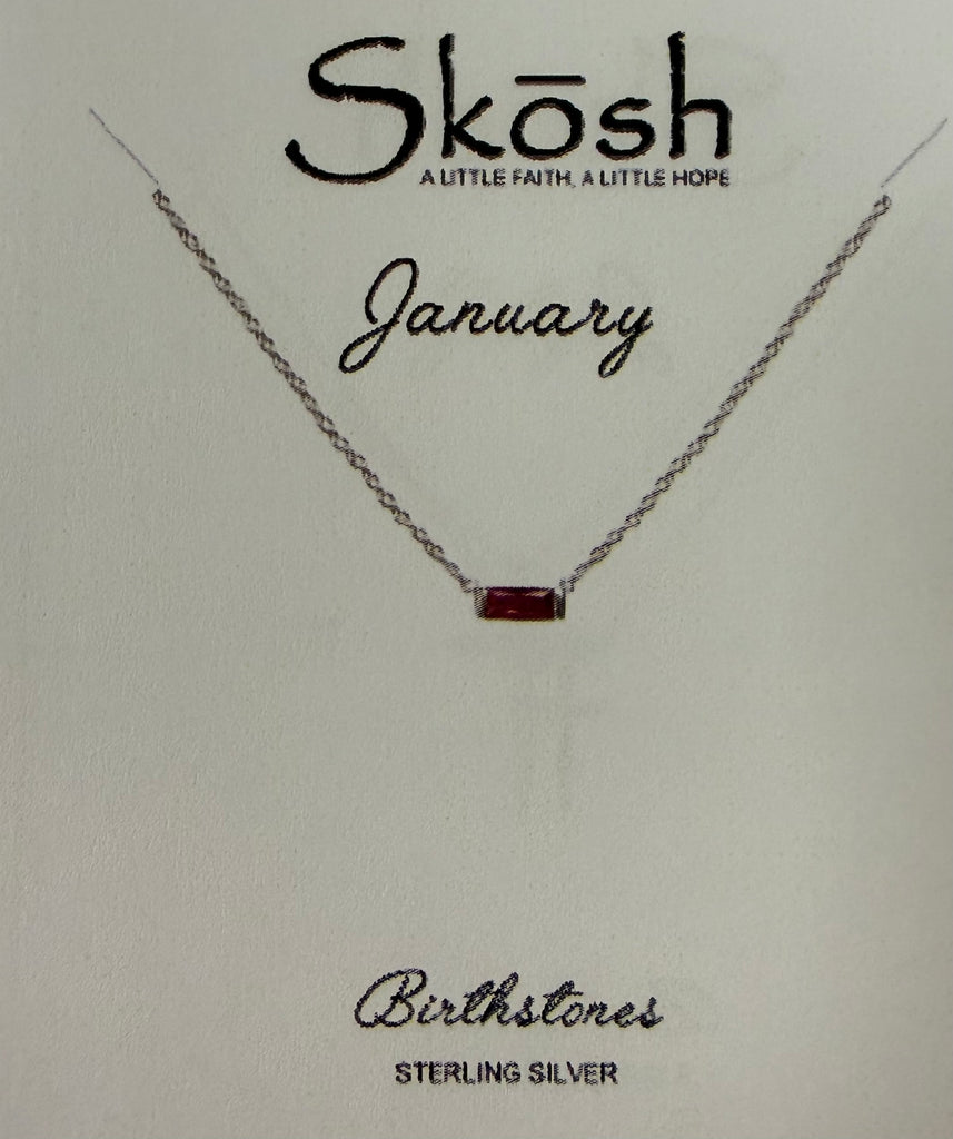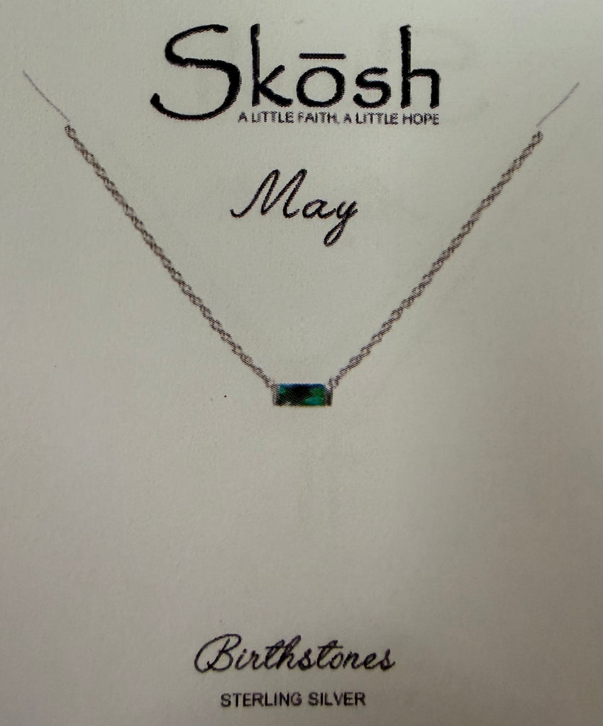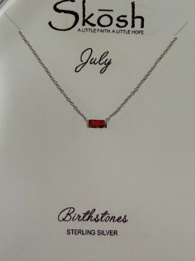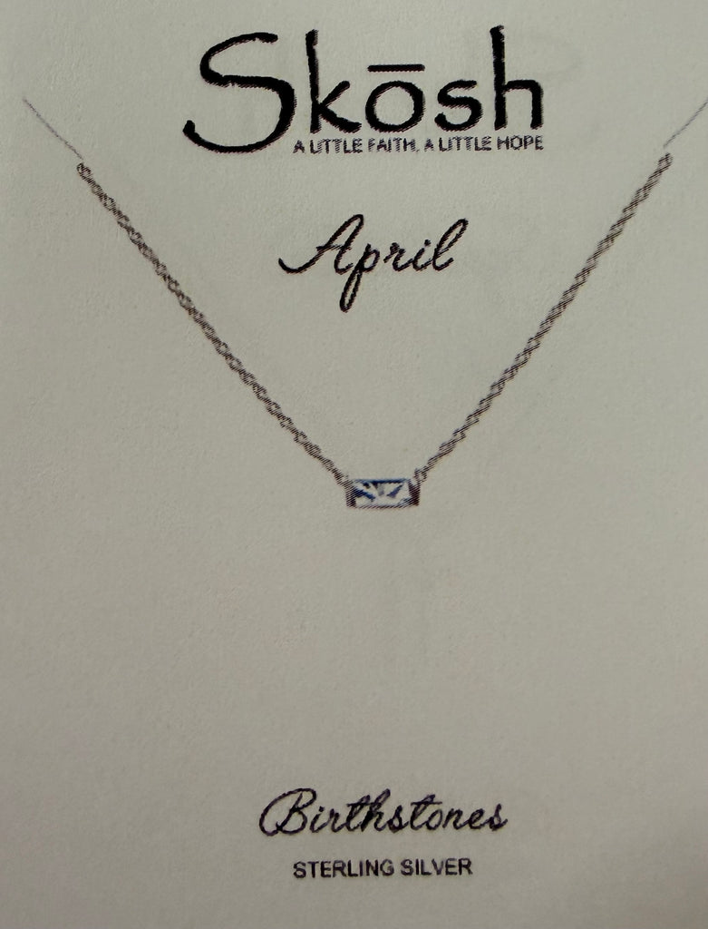 Baguette Birthstone Necklace- Silver