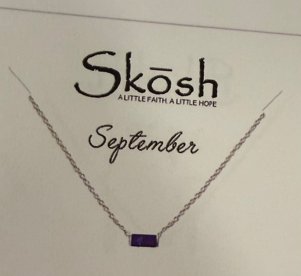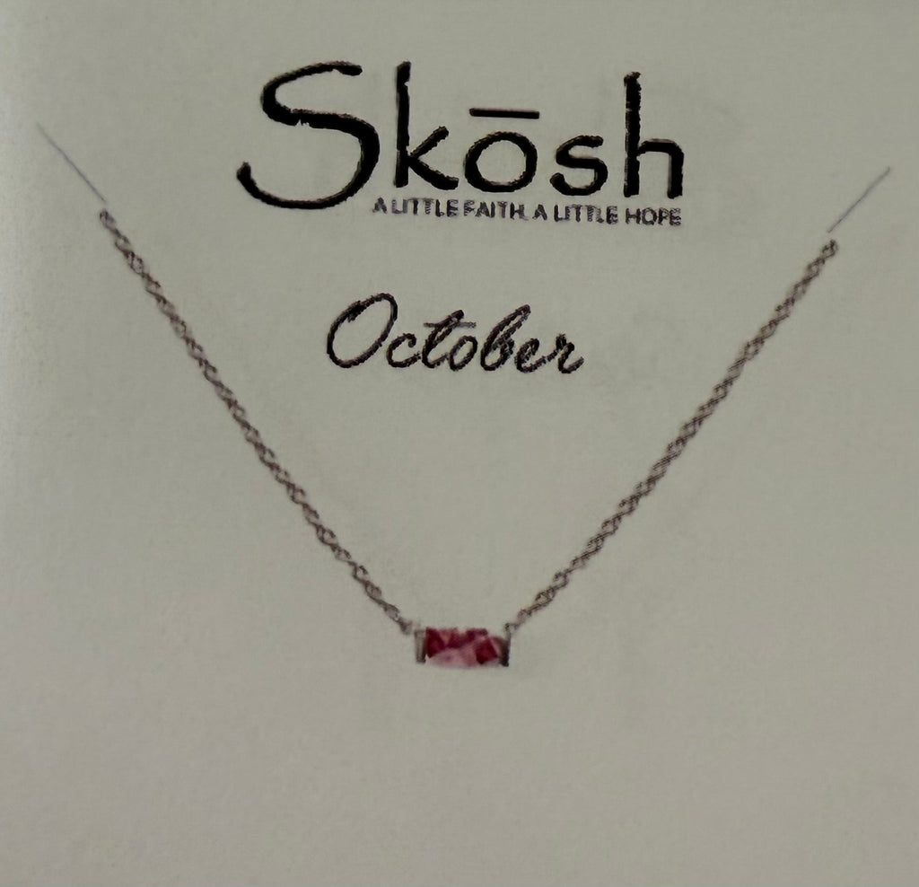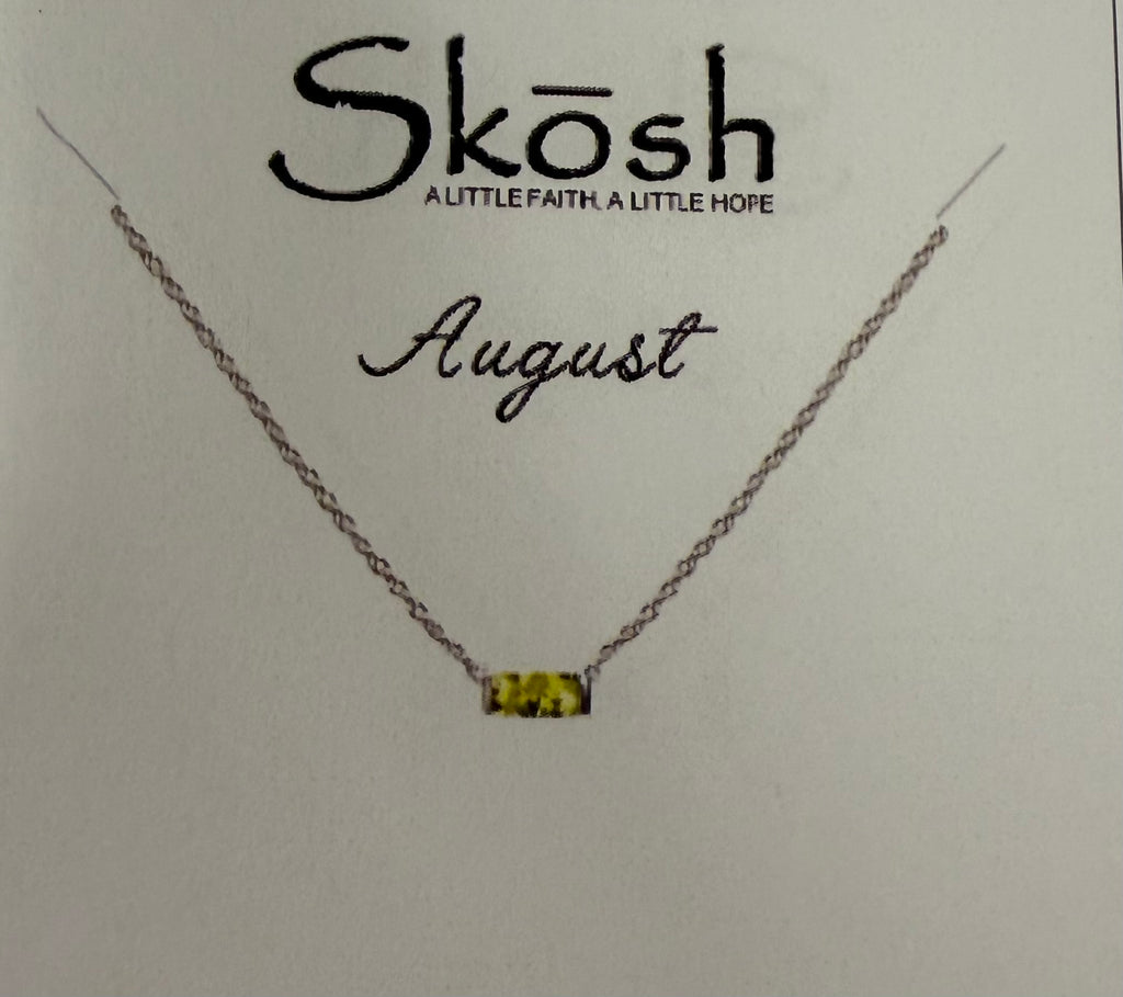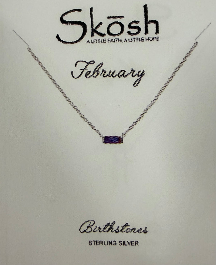 Baguette Birthstone Necklace- Silver