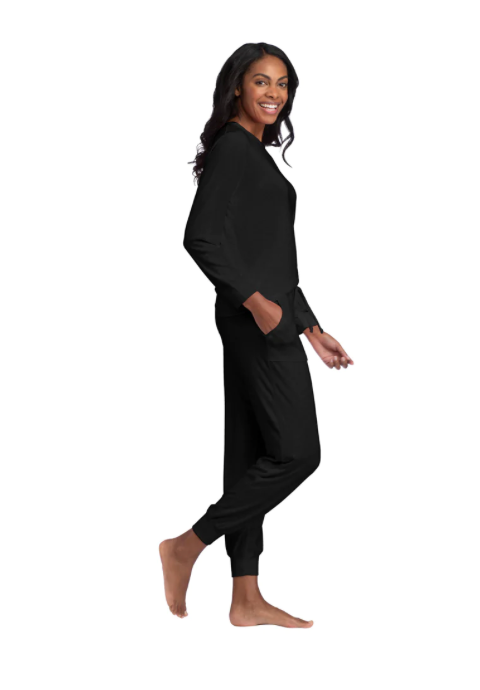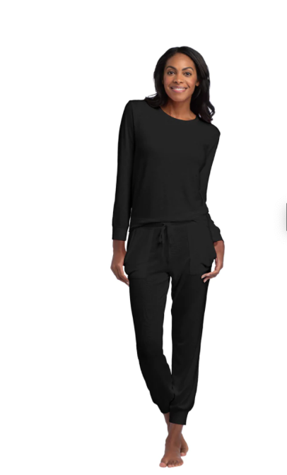 This dreamy, buttery loungewear set comes with an oh-so-soft crew neck top and matching joggers that feel like cashmere on your skin. Stylish cuffed sleeves help keep your hands free while a drawstring and cute patch pockets add extra flair to the luxe joggers.