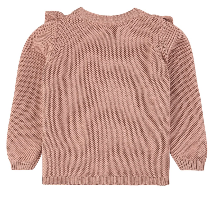 Pink knit cardigan by EnFant. The cardigan has a knitted design.